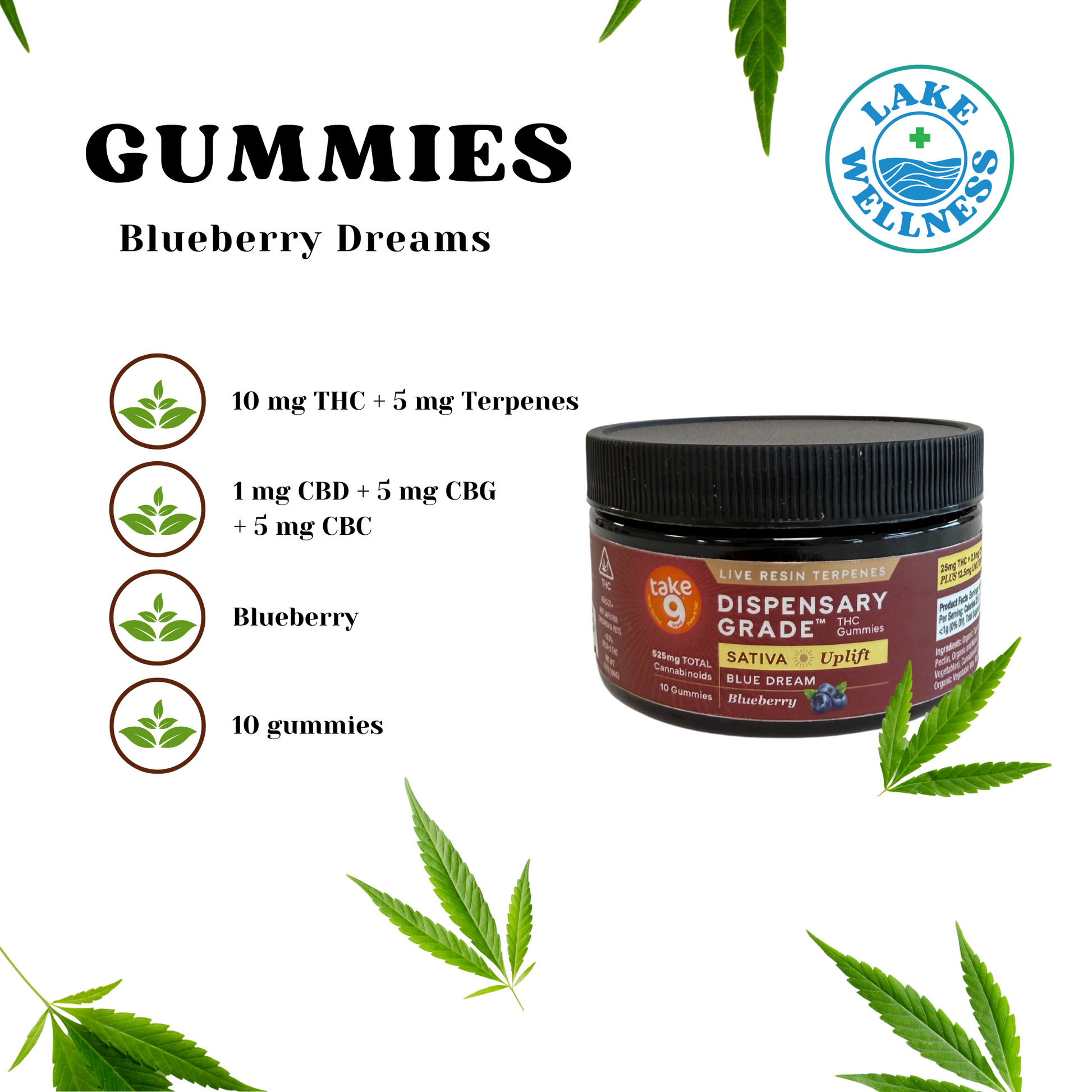 Enjoy the benefits of cannabinoids in a flavorful gummy format. Blue Dream Sativa (10mg THC / 1mg CBD / 5mg CBG / 5mg CBC / 5mg Terpenes) is designed for targeted support, whether you’re looking to focus, relax, or rest.