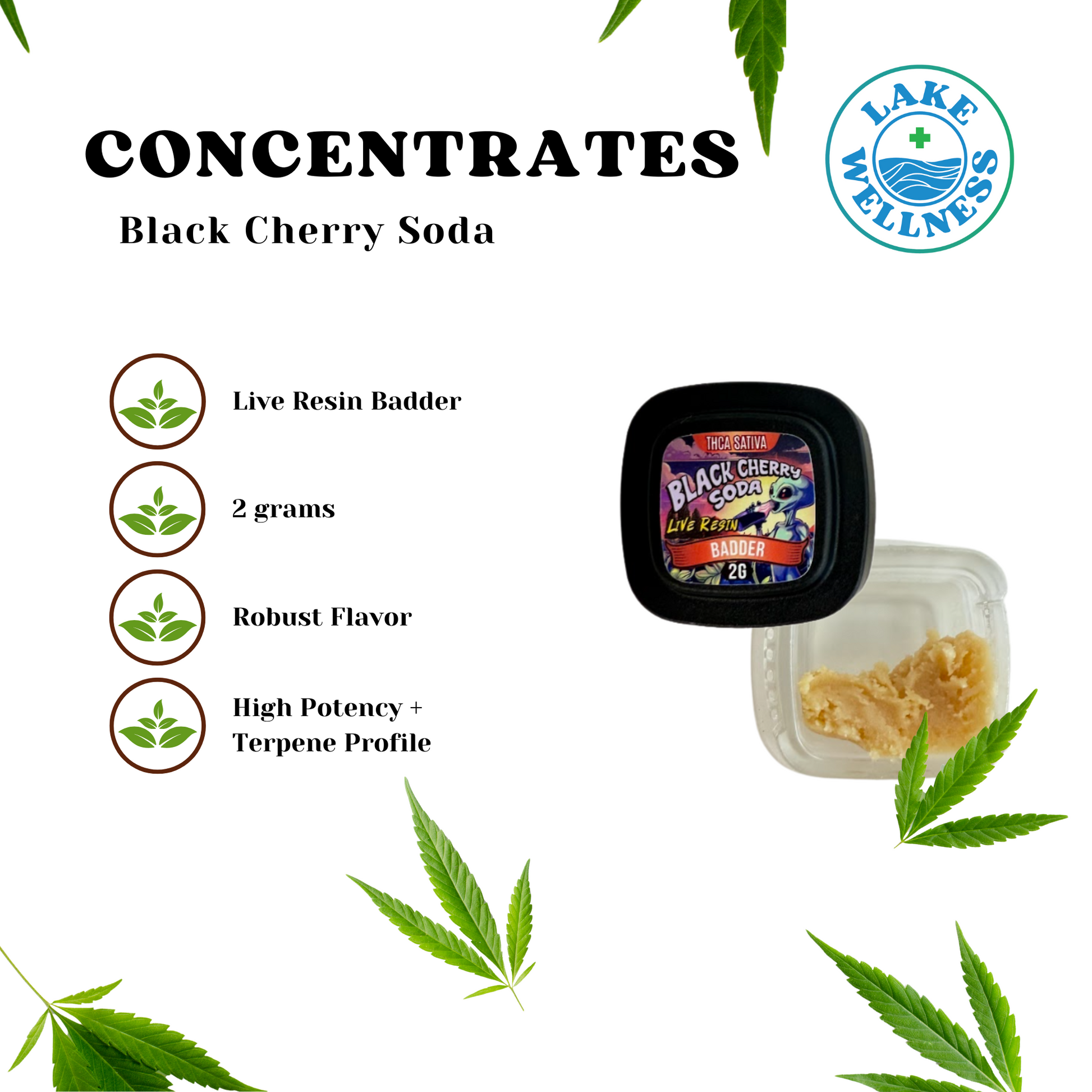Black Cherry Soda Live Badder 2 grams delivers a robust and flavorful concentrate experience, extracted using advanced methods for maximum potency and terpene preservation.